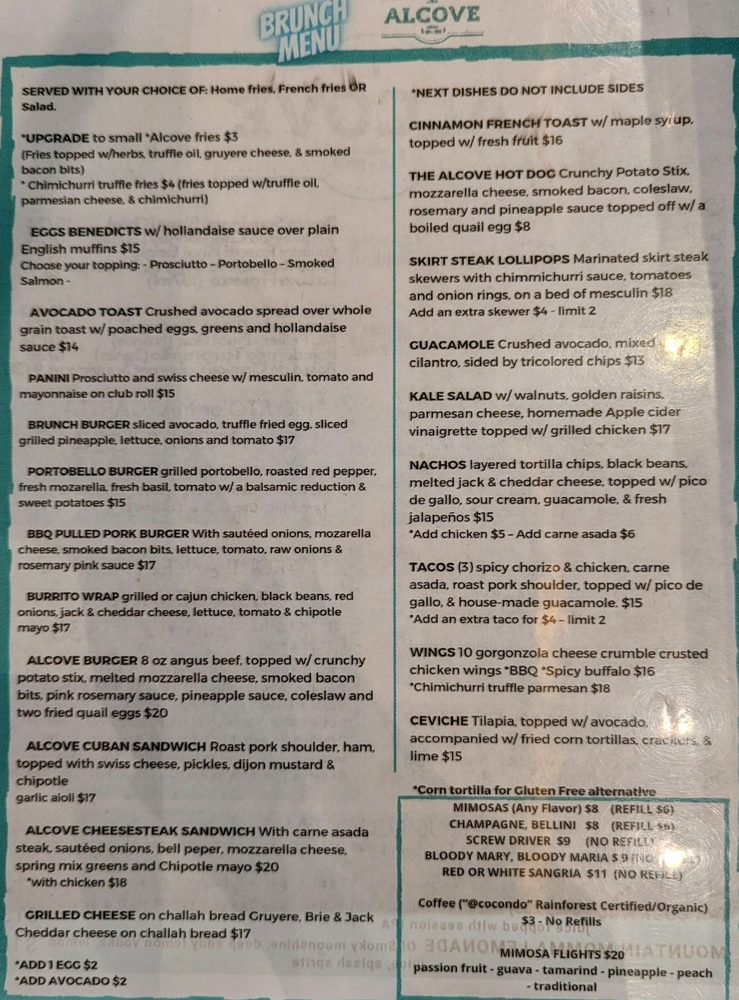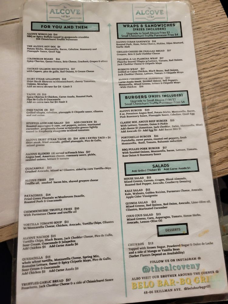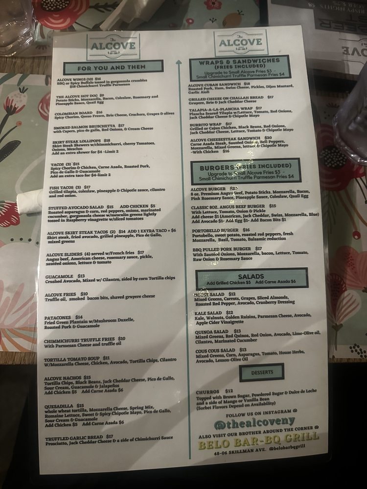 The Alcove Menu (Update 2025)