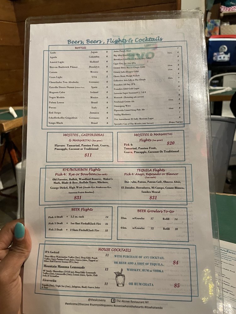 The Alcove, located in Sunnyside, NY, offers a diverse menu spanning gastropub, tapas bar, breakfast, and brunch options. With a range of vegan and vegetarian choices, the restaurant caters to various dietary preferences. Customers praise the friendly staff, cozy ambiance, and delicious food, with standout dishes like the burger and truffle fries receiving high acclaim. Despite some space constraints, patrons rave about the quality of the meals served. From starters to main courses, each item is meticulously designed and cooked to perfection, leaving a lasting impression on diners. The Alcove also provides additional amenities such as outdoor seating, a full bar, and catering services, ensuring a memorable dining experience for all visitors.
